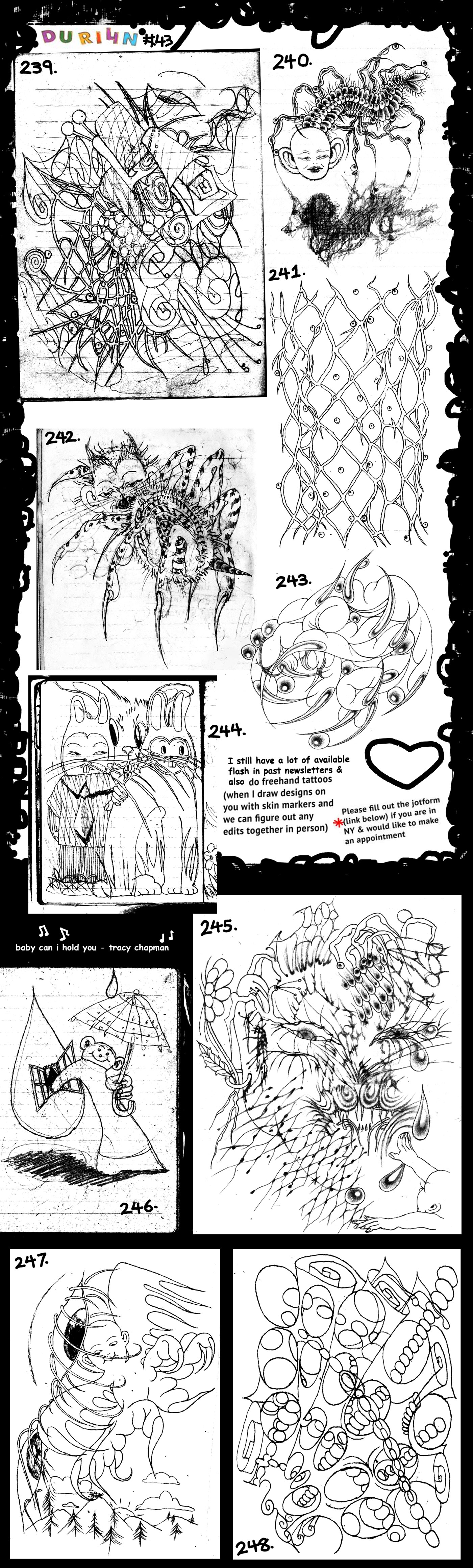 *Please fill out [this jotform] if you are in NY and would like to get a design from previous newsletters tattooed. I also do freehand tattoos (please email me your availability, placement idea, and budget).